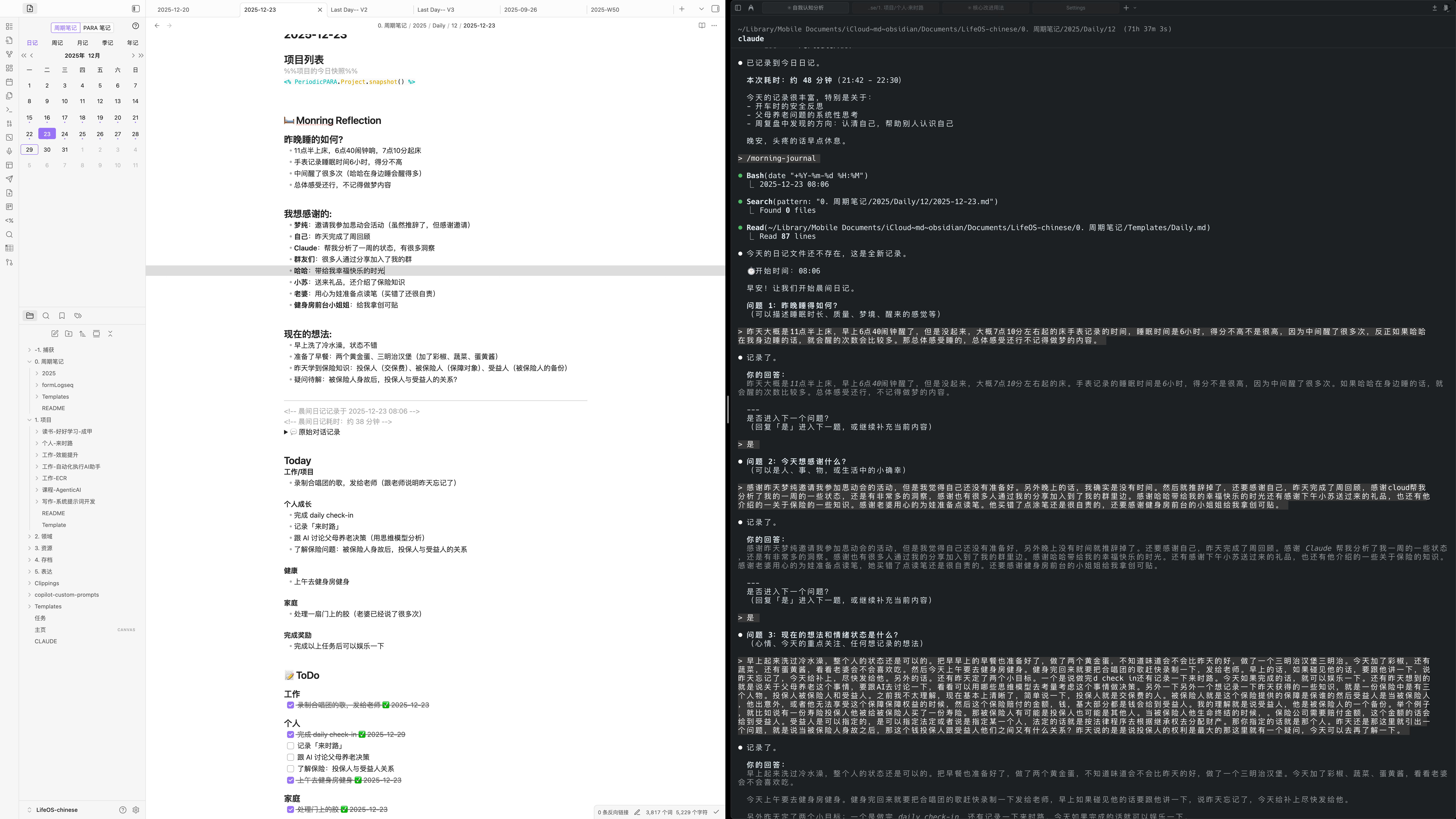 展示一下工作台截图,基于 Obsidian + Claude Code: