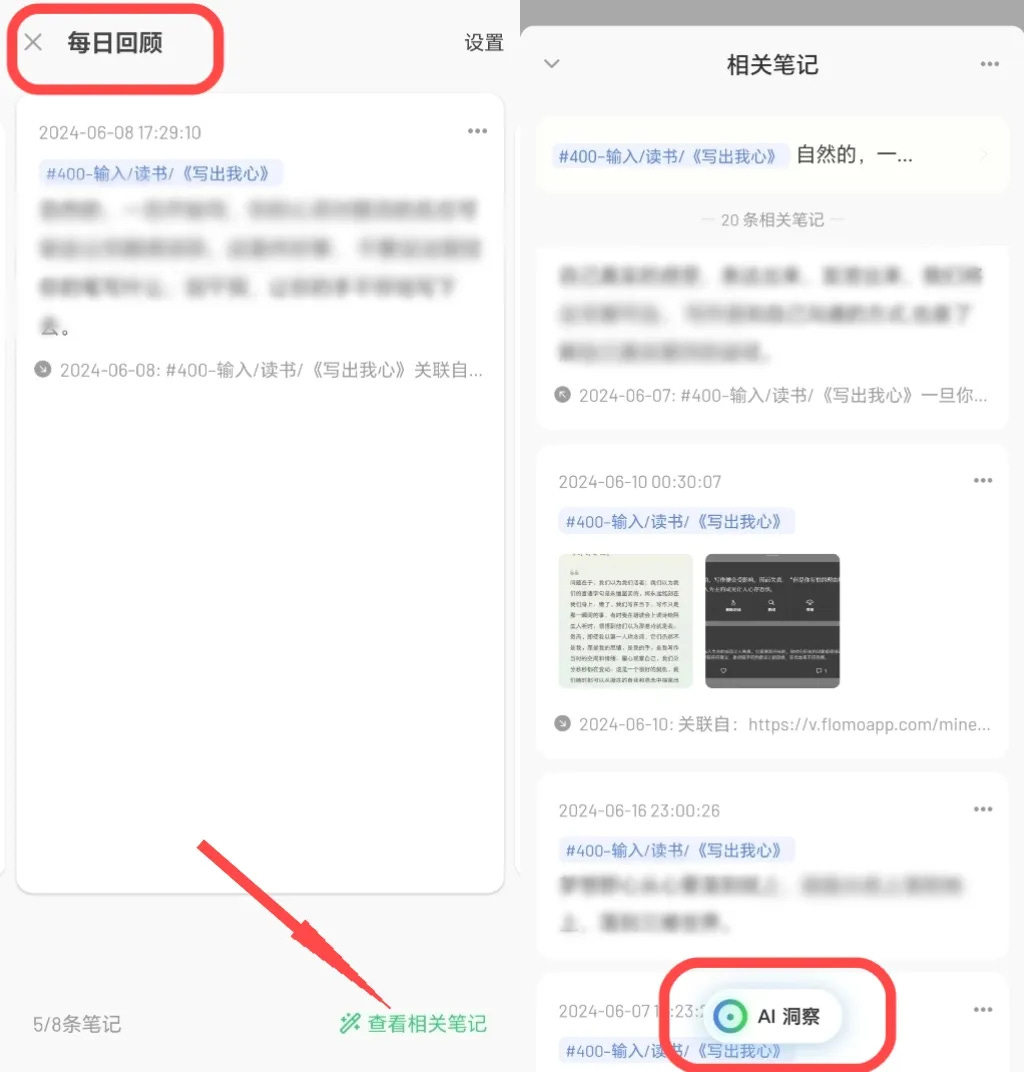 Flomo 的「找一找」正式升级为「AI洞察」,官方收集了这些用户的真实使用场景