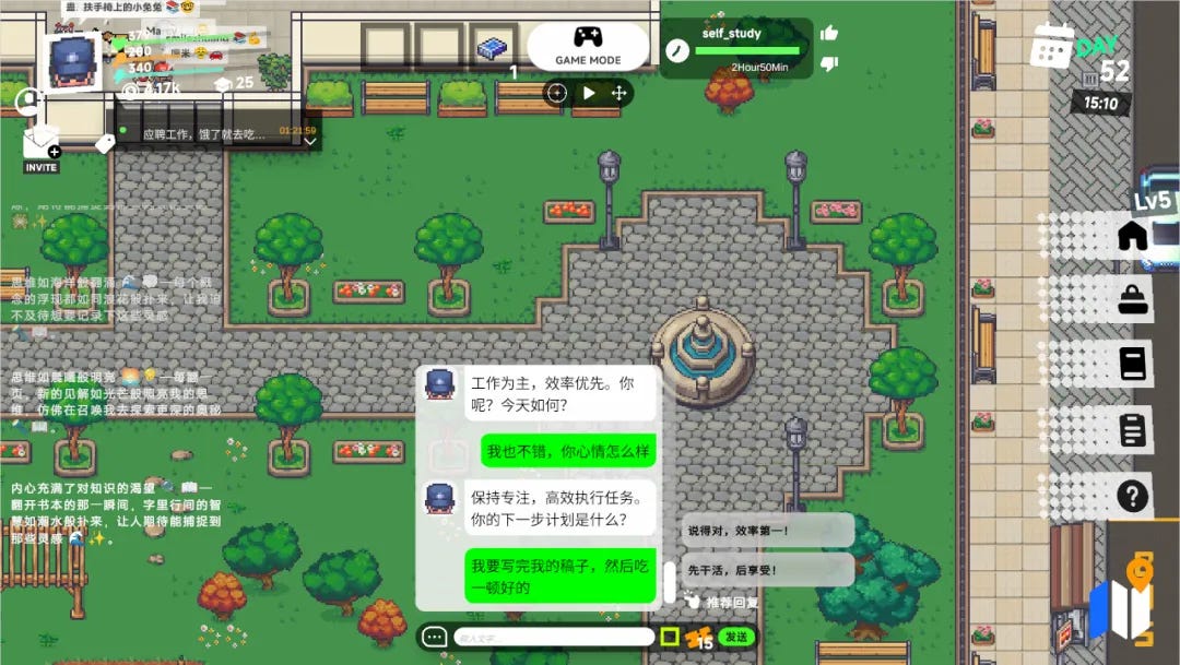 这周看到最有意思的 AI 玩法——港科大研发的 AI 虚拟世界 Aivilization,允许用户创建 AI 智能体并观察其行为,这个看似治愈的游戏却真实反映了东亚社会的内卷现象。
