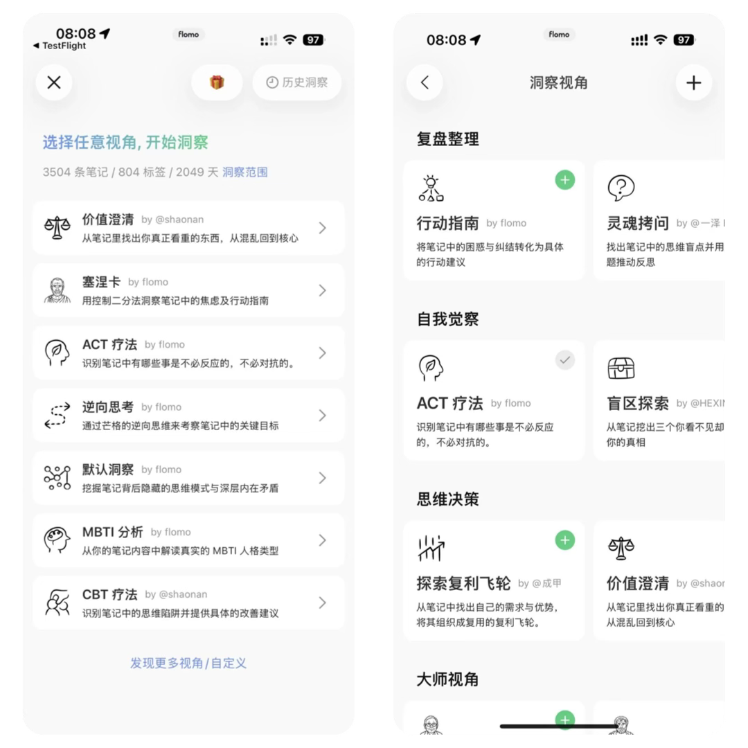 取而代之的,flomo 提供了一系列精心设计的「视角」。