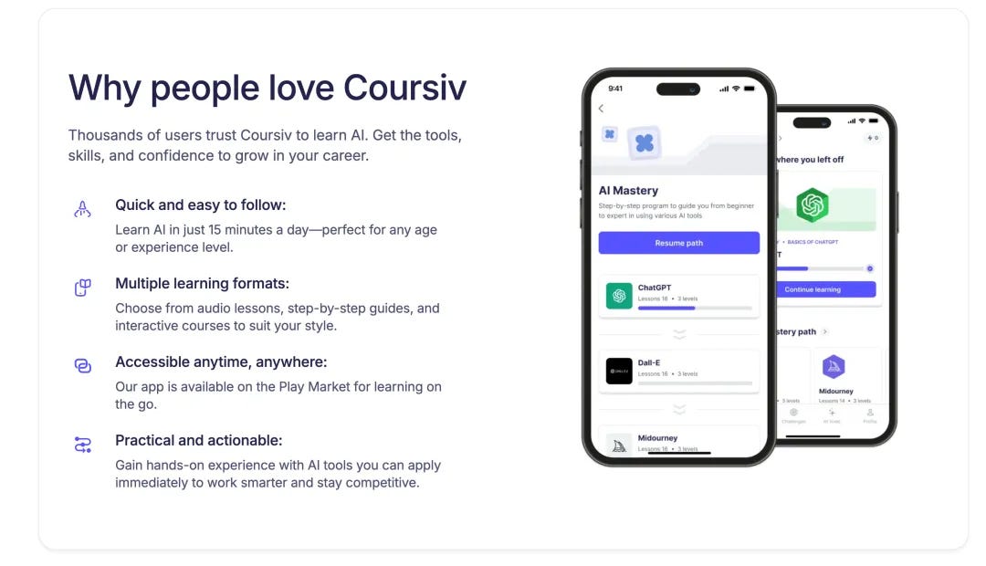 第一,精准定位「懒人」市场。目标用户是知道 AI 重要但不愿主动学习的婴儿潮一代。Corsif 没有提供新知,而是将网络上免费的碎片信息,用类似 Duolingo 的游戏化方式包装成线性、无摩擦的课程,卖的不是知识,而是「方向感」和「跟上时代的信心」。
