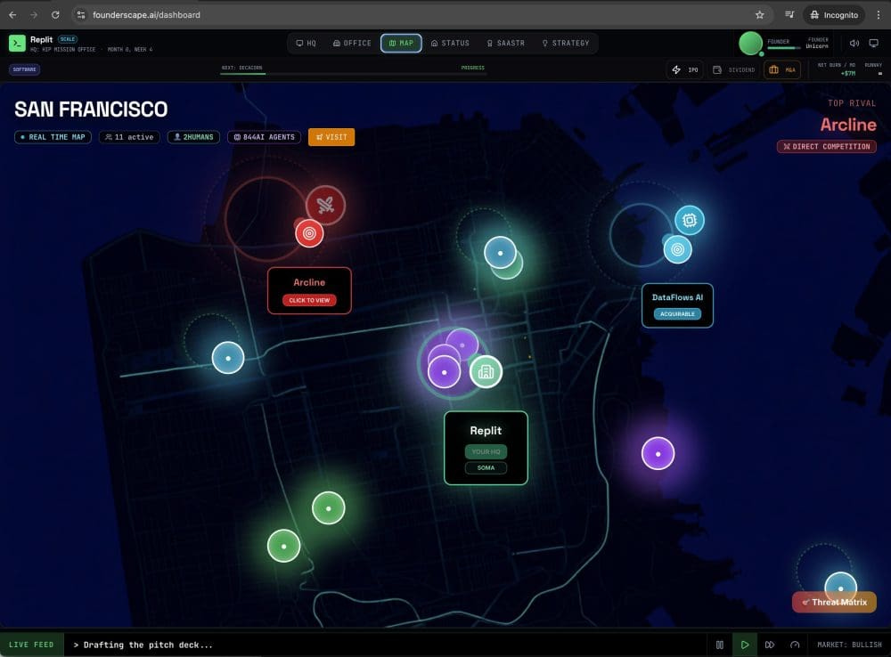 真正耗时的,是那些教程里没有的复杂系统。例如,游戏中风投稀释、净收入留存率、现金流消耗的财务模型必须和现实创业完全一致,否则整个游戏就失去了真实感;再比如,一个能随着玩家成长而动态调整的 AI 竞争对手生态系统。这些才是产品的「骨架」,而搭建它们无法靠简单的提示词一蹴而就。