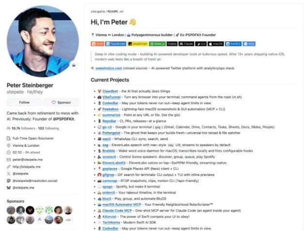 Clawdbot(Maltbot)的开发者、前 PSPDFKit 创始人 Peter Steinberger,以超过 1 亿欧元卖掉自己公司后财富自由,分享了对 AI Agent 未来的颠覆性看法:未来一大批应用会消失,提示词就是新的用户界面(后半句我不太认同)。