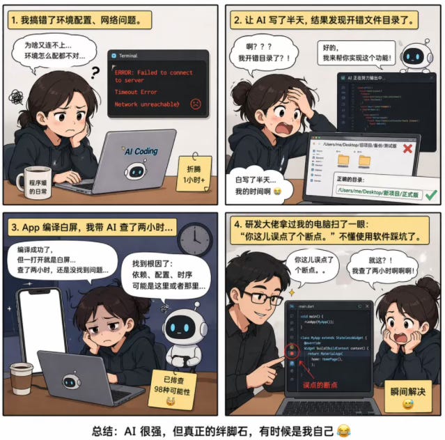 真正的价值在于验证了产品角色可深度参与实现。AI 擅长快速搭建框架与界面修补,但在涉及真实业务链路与复杂环境时,对规格、验证与代码审查的要求反而更高。后期拉开差距的是发现根因与控制回归的能力。