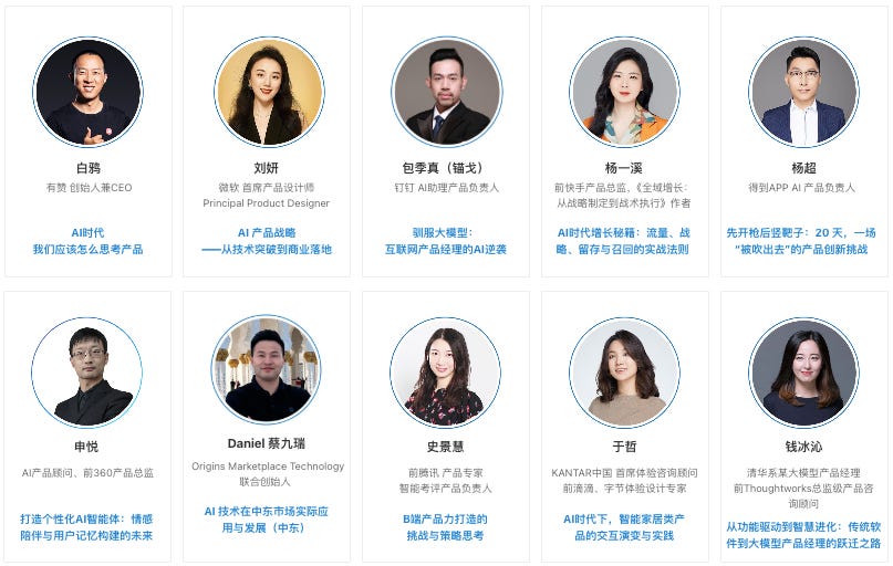 嘉宾阵容强大,包括有赞创始人兼 CEO 白鸦、微软首席产品设计师刘姸、Thoughtworks 中国区总经理肖然、前快手产品总监杨一溪、前 360 产品总监申悦等(空间有限,下图仅展示部分嘉宾,更多)。